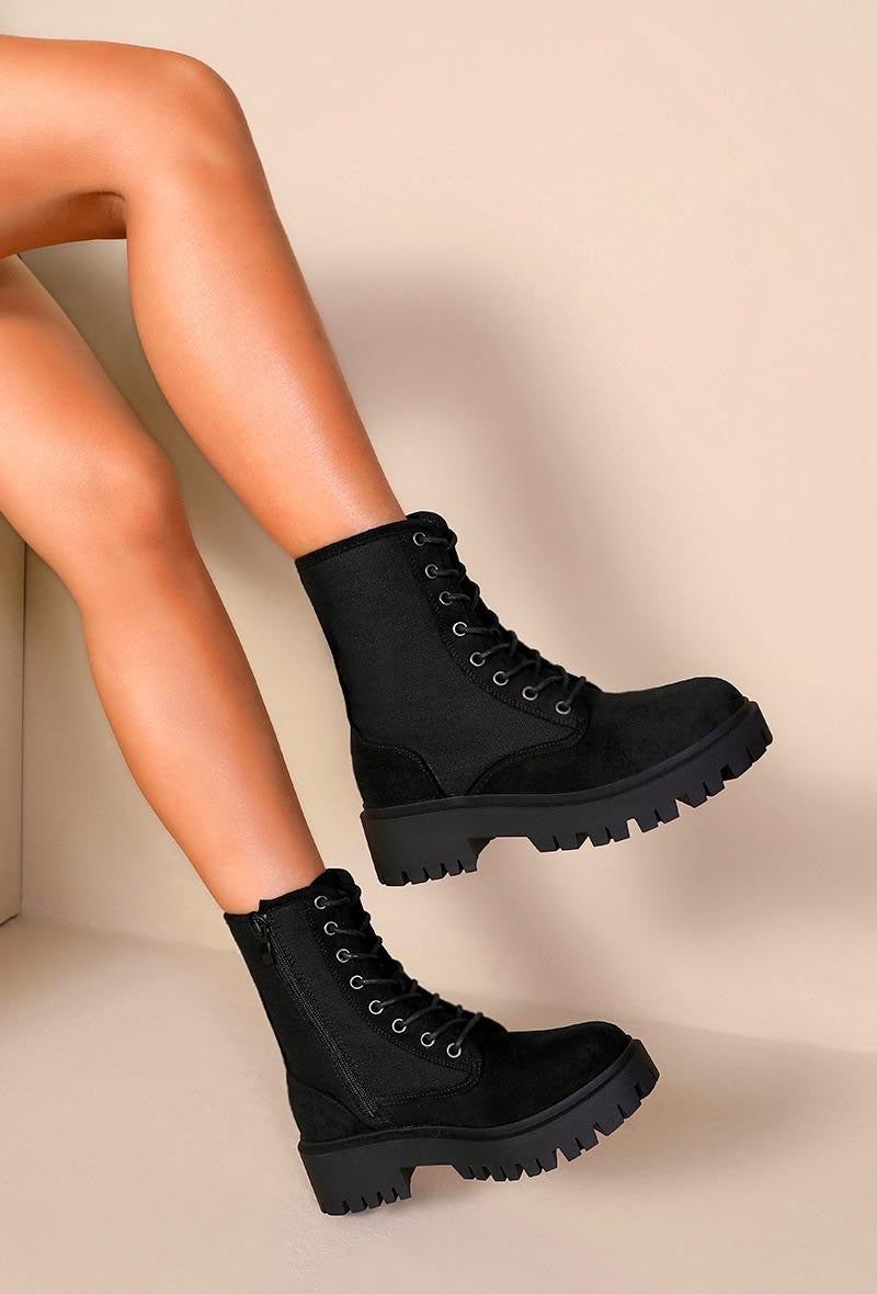 Su diseño con cordones y cremallera lateral se ajusta al pie sin esfuerzo, mientras la caña media estiliza la pierna y queda ideal con vestidos, vaqueros o leggings. Un básico de fondo de armario para tus planes de día, tarde o finde.